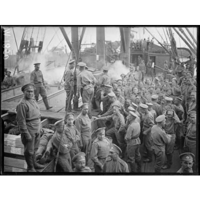 L'arrivée des soldats russes dans le port de Marseille. [légende d'origine]