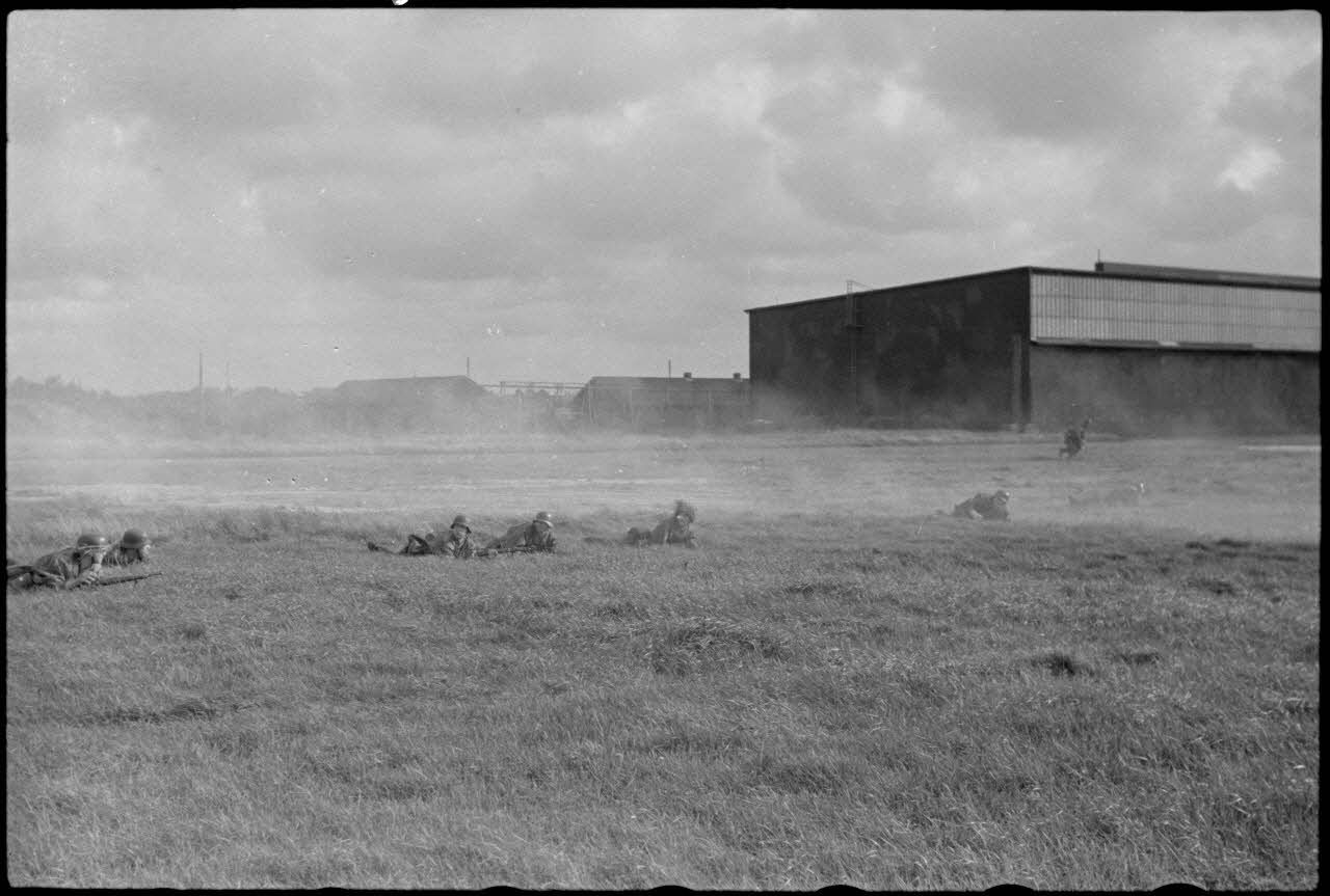 En Norvège, sur le terrain d'aviation de Stavanger-Sola, en la présence des généraux Felber et Harmjanz, des fantassins de la Luftwaffe démontrent leurs capacités à prendre d'assaut un terrain d'aviation.