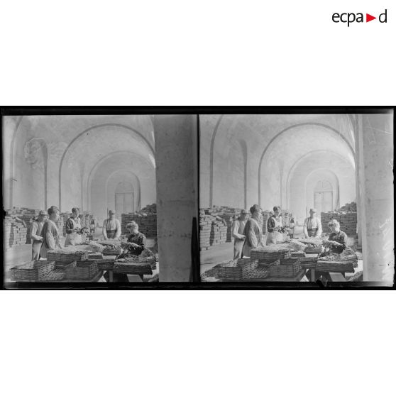 L'expédition de légumes de l'orangerie du château de Versailles vers le front fin juillet 1917. Le reportage présente l'emballage des légumes et le chargement des camions à destination du front.