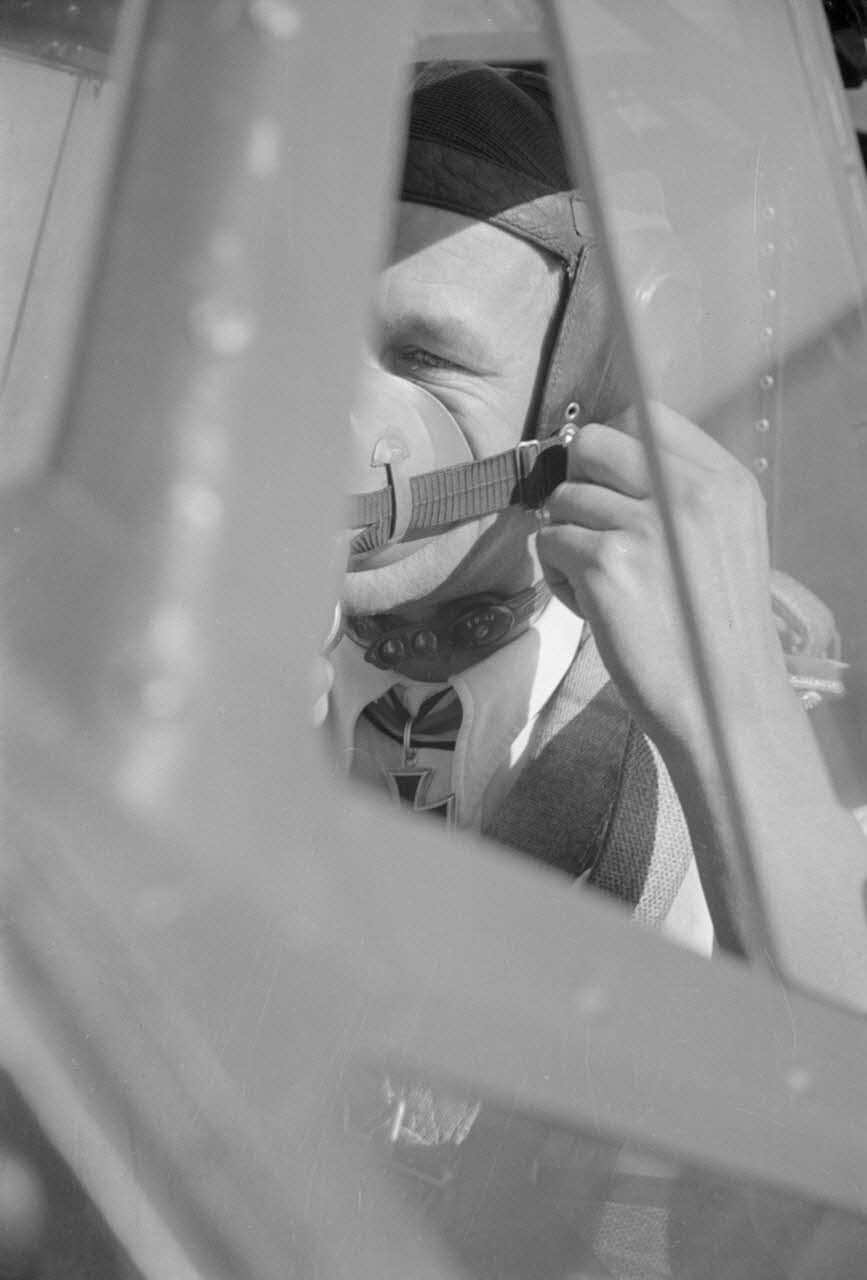 L'Oberfeldwebel Eberhard von Boremski prend place à bord d'un chasseur Messerschmitt Bf-109 du Ergänzungsgruppe Süd.