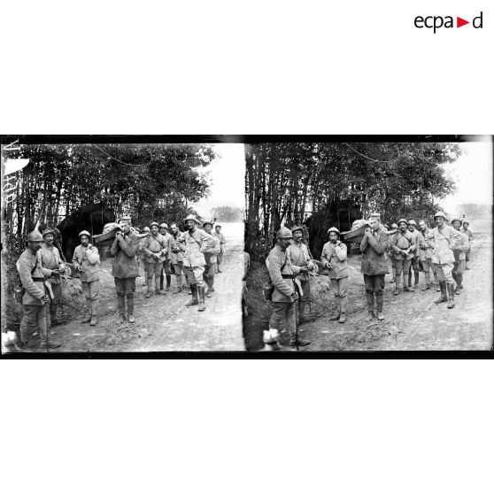 A Epernay (Marne, 28 juillet 1918), Georges Clemenceau, accompagné des généraux Berthelot et Mordacq, remet la fourragère verte (croix de guerre) au 33e régiment d'infanterie coloniale (RIC), rattaché à la 10e DIC division d'infanterie coloniale (DIC) du général Marchand. La division s'est illustrée dans les combats défensifs du 15 et 16 juillet dans le secteur ouest d'Epernay.