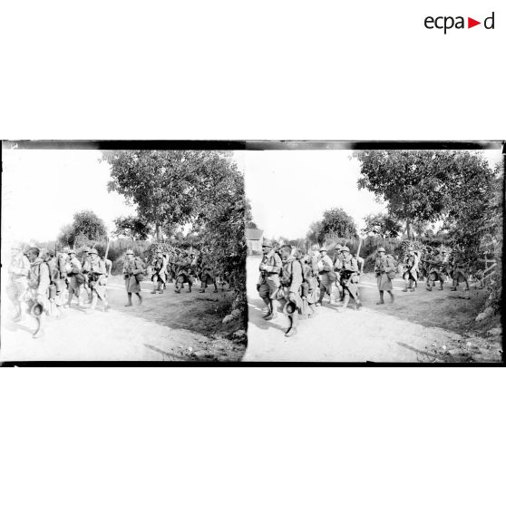 Ygny le Jard. Marne. Le 14e d'infanterie montant en ligne.