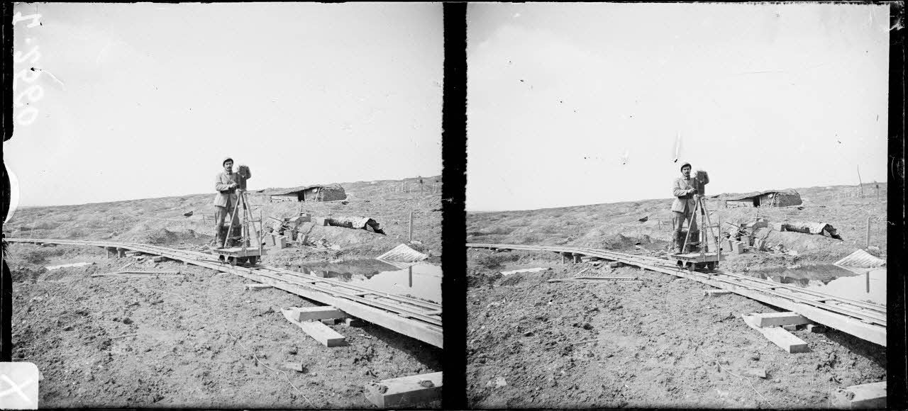 Il s'agit probablement d'Albert Samama-Chikli lui même, photographié par son assistant, dont on ne connaît pas l'identité (voir photo SPA 54 L 2551 ) ou par un soldat. Voir film 14.18 A 233 et comptes-rendus opérateur n° 145 et 146. Albert Samama-Chikli est à la fois le photographe et le caméraman pour cette mission.