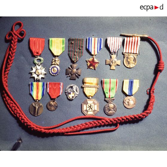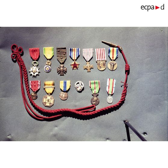 73. Remise de la légion d'honneur à M. l'Abbé Loys Roux par son frère chevalier le 28 août 1960 au monument aux morts des deux guerres à Chénas Rhône.