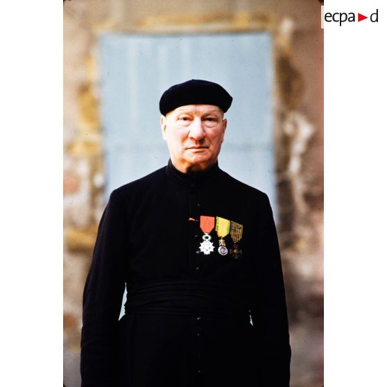 75. Remise de la légion d'honneur à M. l'Abbé Loys Roux par son frère chevalier le 28 août 1960 au monument aux morts des deux guerres à Chénas Rhône.