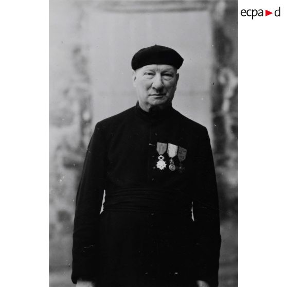 74. Remise de la légion d'honneur à M. l'Abbé Loys Roux par son frère chevalier le 28 août 1960 au monument aux morts des deux guerres à Chénas Rhône.
