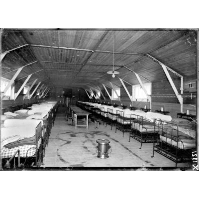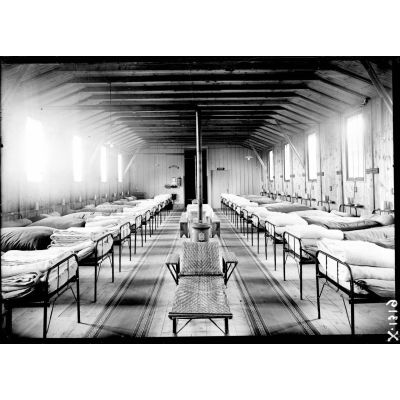 Loxéville (Meuse). L'hôpital d'évacuation. Intérieur d'une baraque Adrian à panneaux mobiles.