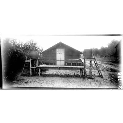 Loxéville (Meuse). L'hôpital d'évacuation. Baraque des bains et lavabos.