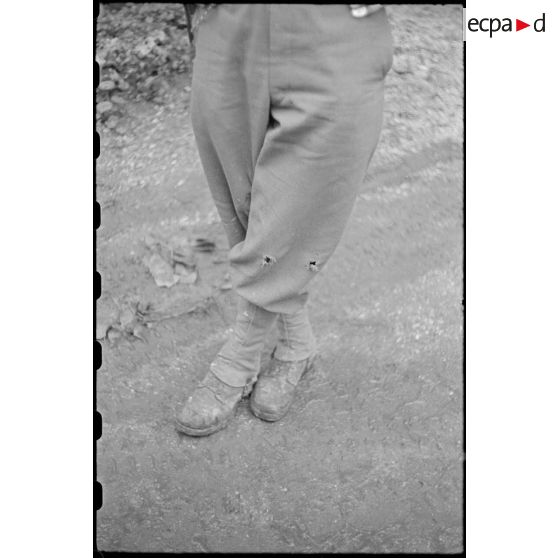 Soldat de la 2e DB touché, peut-être; par une mine anti-personnelle.