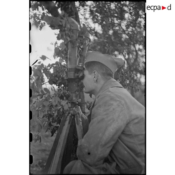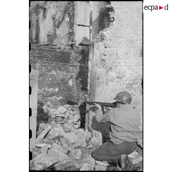 Soldat de la 2e DB à son poste de tir.FTA (sous réserves)