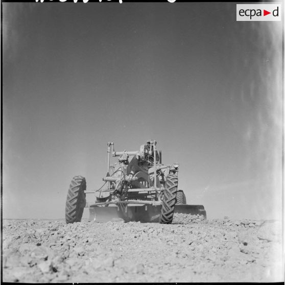 Niveleuse conduite par le sergent Gilbert Rousselot de la 3e compagnie saharienne du Génie (3e CSG).