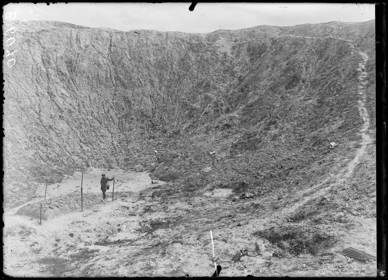 La Boisselle (Somme). Entonnoir de mine anglaise (28 m de profondeur, diamètre 60). [légende d'origine]