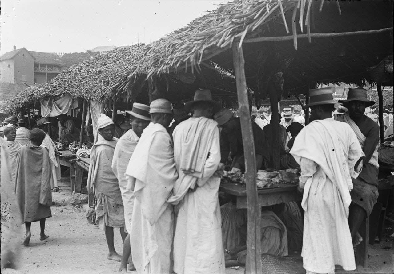 Edgard Imbert (1873-1915), sous-lieutenant de l'infanterie coloniale et photographe est en poste à Madagascar du 10 février 1900 au 23 avril 1902. Arrivé à Tananarive, il photographie l'architecture de la ville, la population, la vie quotidienne et notamment le marché.