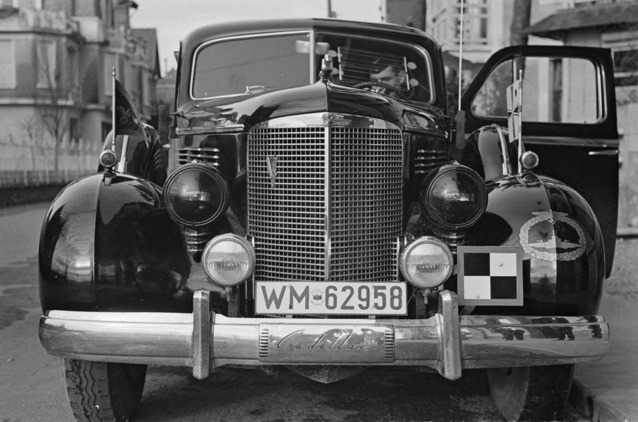 La Cadillac 75 modèle 1938 WM-62958 de l'amiral Karl Dönitz garée devant l'hôtel Majestic de La Baule.