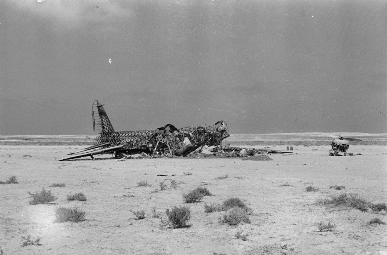 La carcasse d'un bimoteur britannique Vickers Wellington dont il ne reste que le squelette en bois.