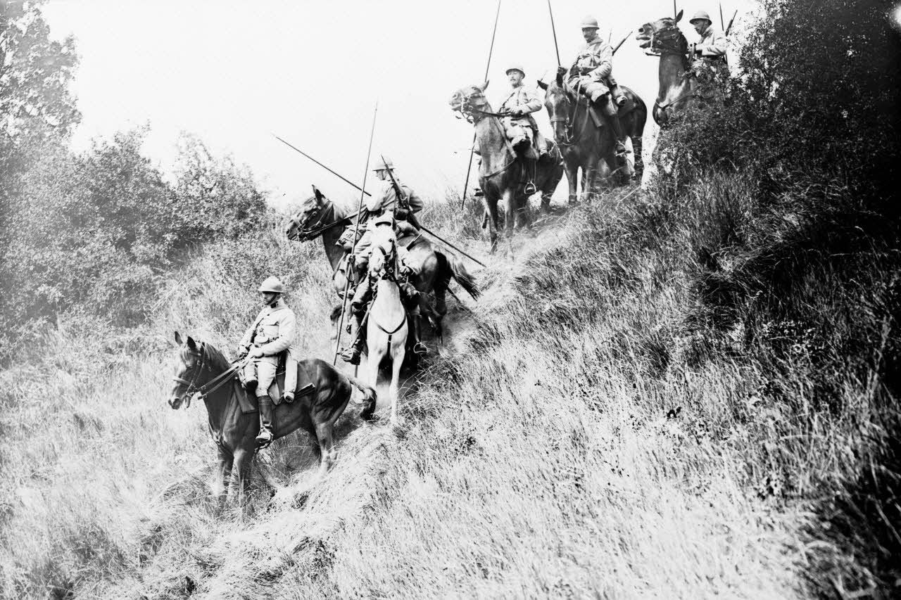 La cavalerie s'entraîne aux passages difficiles. Aisne, 1917. [légende d'origine]