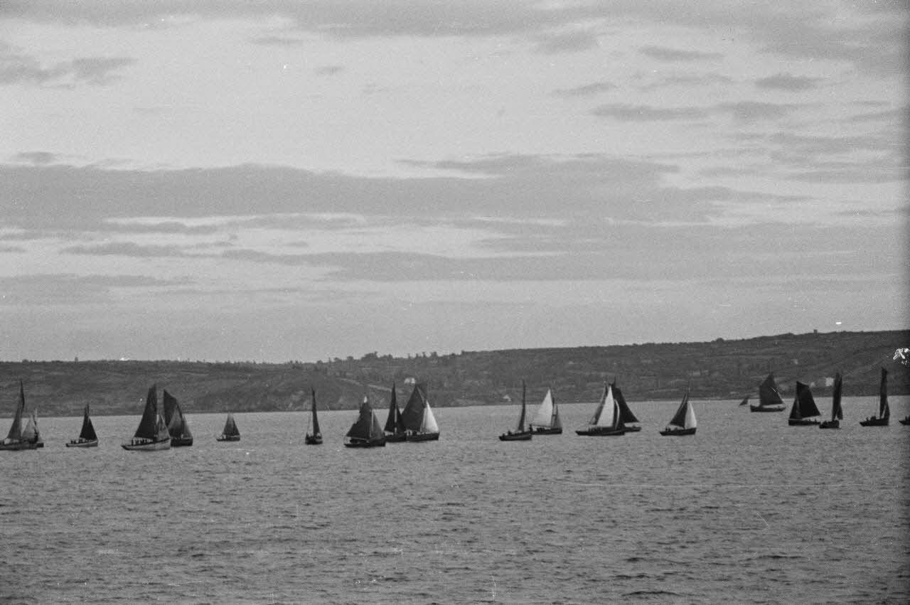 Le retour de croisière d'un sous-marin allemand photographié depuis le pont d'un dragueur de mines du type Sperrbrecher (briseur de blocus).