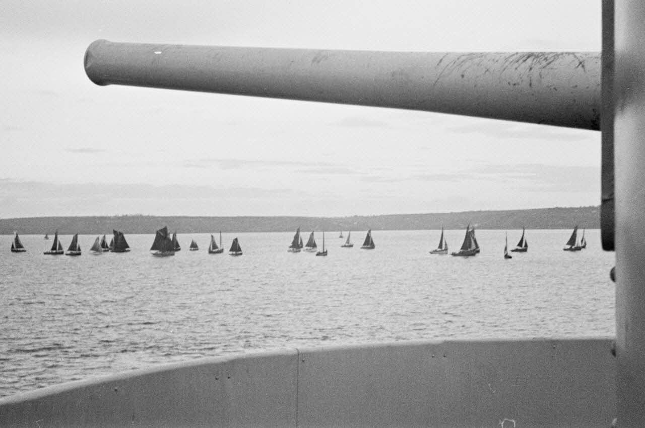Le retour de croisière d'un sous-marin allemand photographié depuis le pont d'un dragueur de mines du type Sperrbrecher (briseur de blocus).