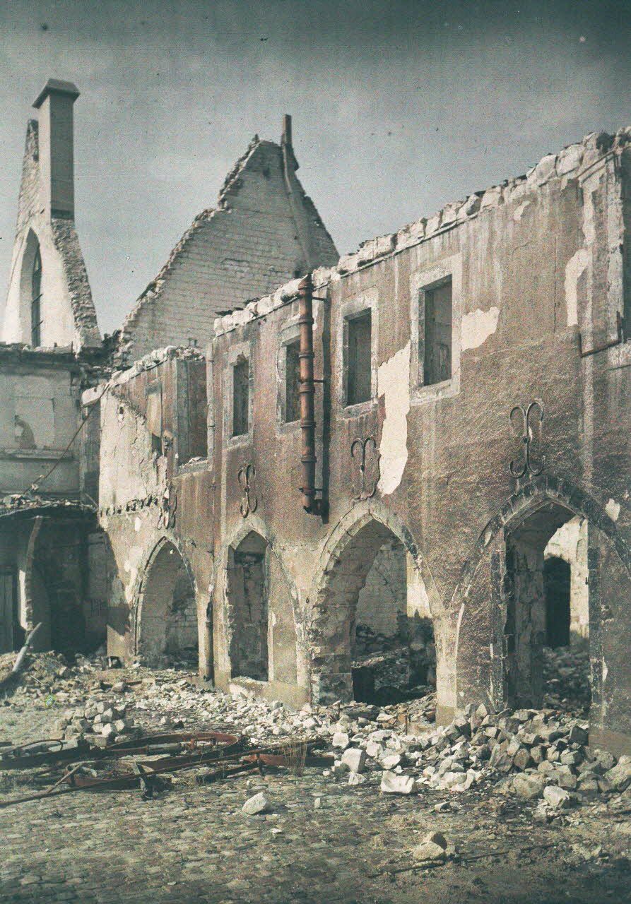 - les ruines et destructions occasionnées par la guerre à Verdun, Reims, Arras ou ailleurs : maisons, églises, cathédrales, lieux symboliques des grandes villes de province en ruines ;