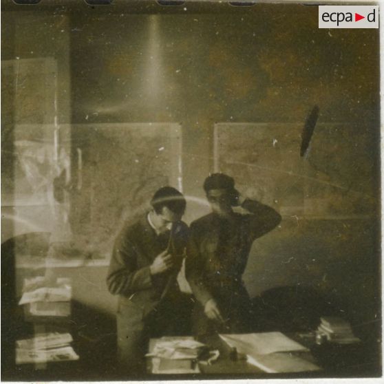 Note : La légende et la datation de la photographie ont été communiquées par Claude Brézillon lors de l'entrée du fonds dans les collections de l'Etablissement de communication et de production audiovisuelle de la Défense (ECPAD).