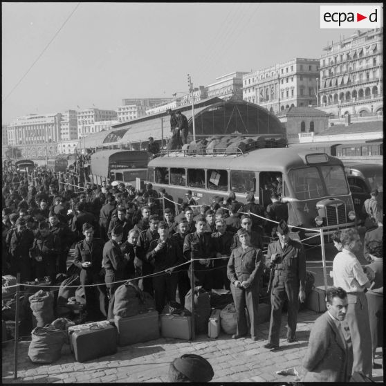 Les rappelés libérables attendent sur le quai.
