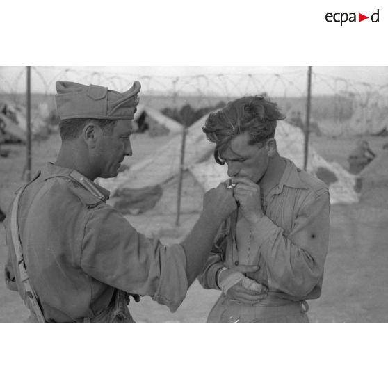 Un gendarme italien et un prisonnier britannique.