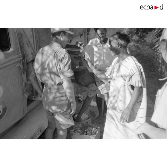 Commerce entre les habitants de Siwa et des soldats allemands.