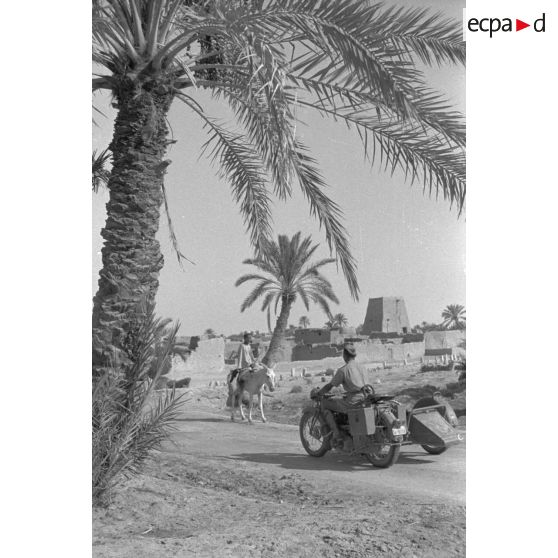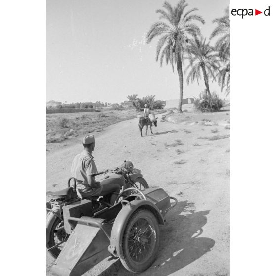 Un side-car de la Luftwaffe, immatriculé WL-SP-0204, dans le secteur dans la ville de Siwa.