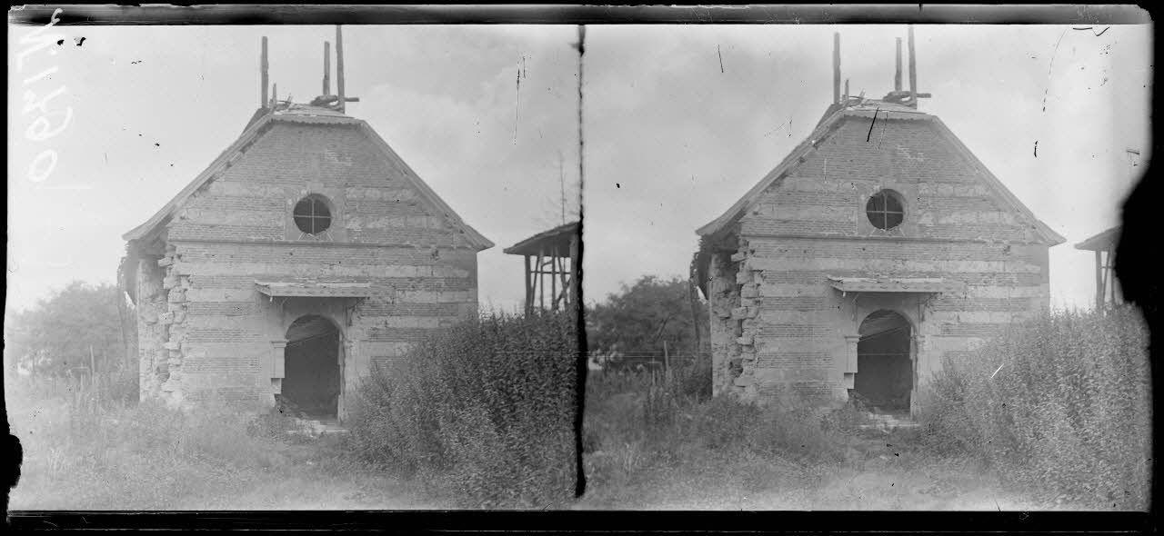 - À Vienne-le-Château (Marne, le 09/08/1917), la façade de l'église garde les traces des bombardements.