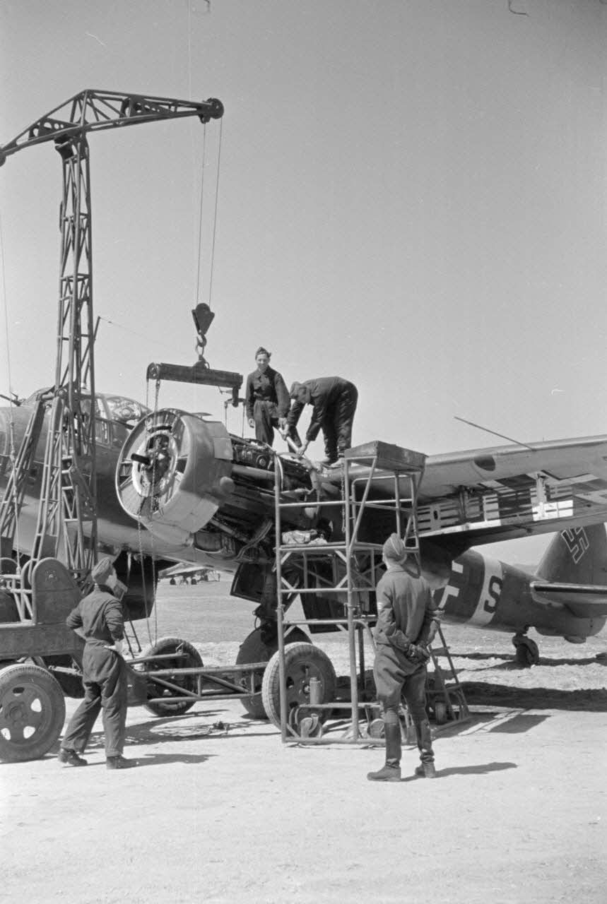 La maintenance d'un bombardier Junkers Ju-88 du Kampfgeschwader 3 "Blitz".