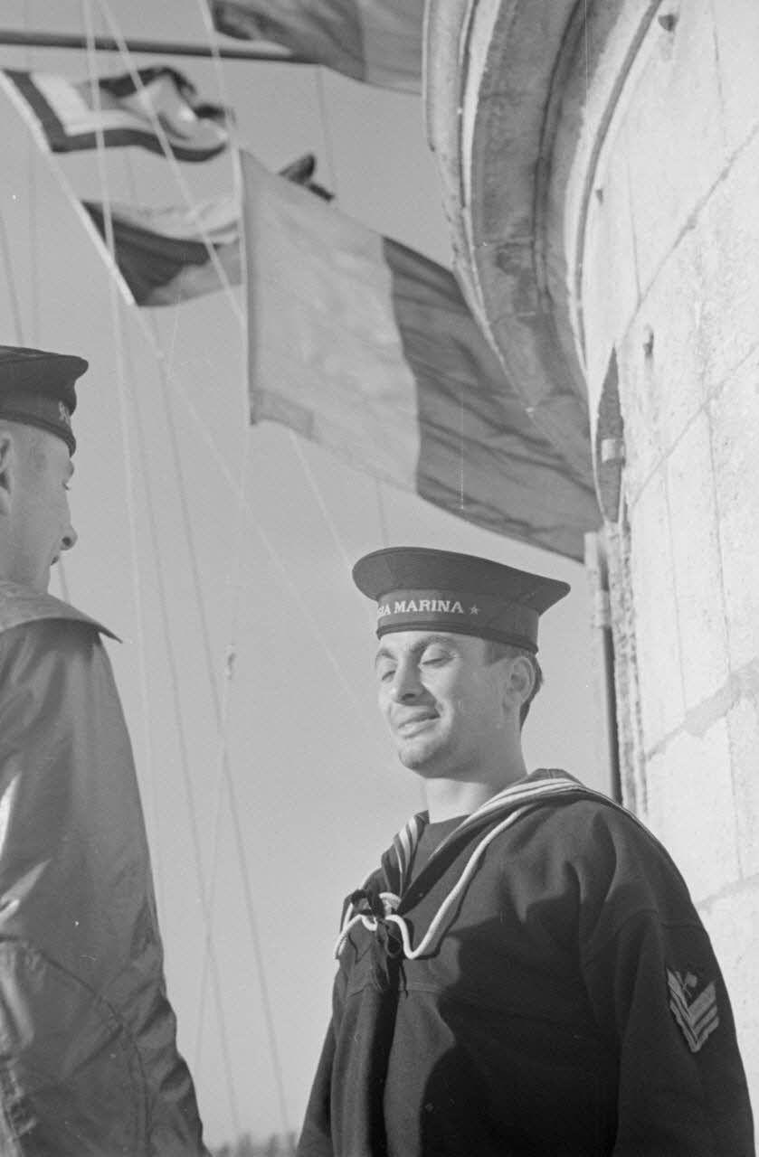 Le phare de la Courbe est utilisé par l'artillerie allemande comme un poste d'observation et comme un poste de direction de tir pour une batterie positionnée non loin du phare. Les canons de 15 cm sont mis en batterie dans des encuvements et camouflés par des filets. Un marin allemand discute avec un marin italien de la "Regia Marina".