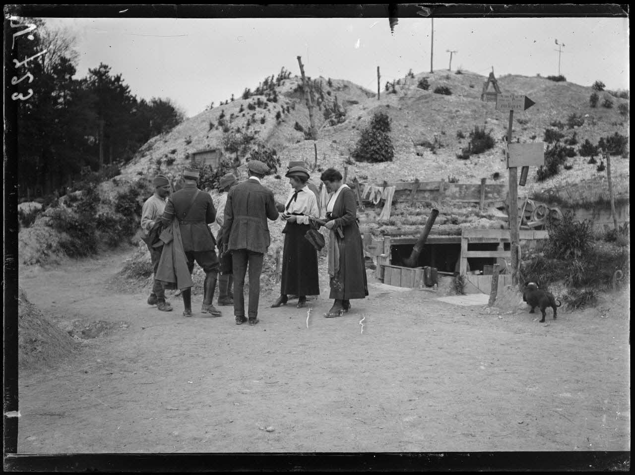 Cette mission, composée de mesdames Turmpacher, Harper et Kinney, se déplace ensuite à La Neuvillette (environ 5 km au nord de Reims) et sur les bords du canal de l'Aisne aux Cavaliers de Courcy, où sont visibles les premières lignes ennemies.Lors de la visite, un lâcher de pigeons voyageurs est effectué devant la délégation (V 725). Cette même délégation arpente une tranchée, où, pour des raisons de sécurité, les visiteurs doivent se cacher de l'observation ennemie.