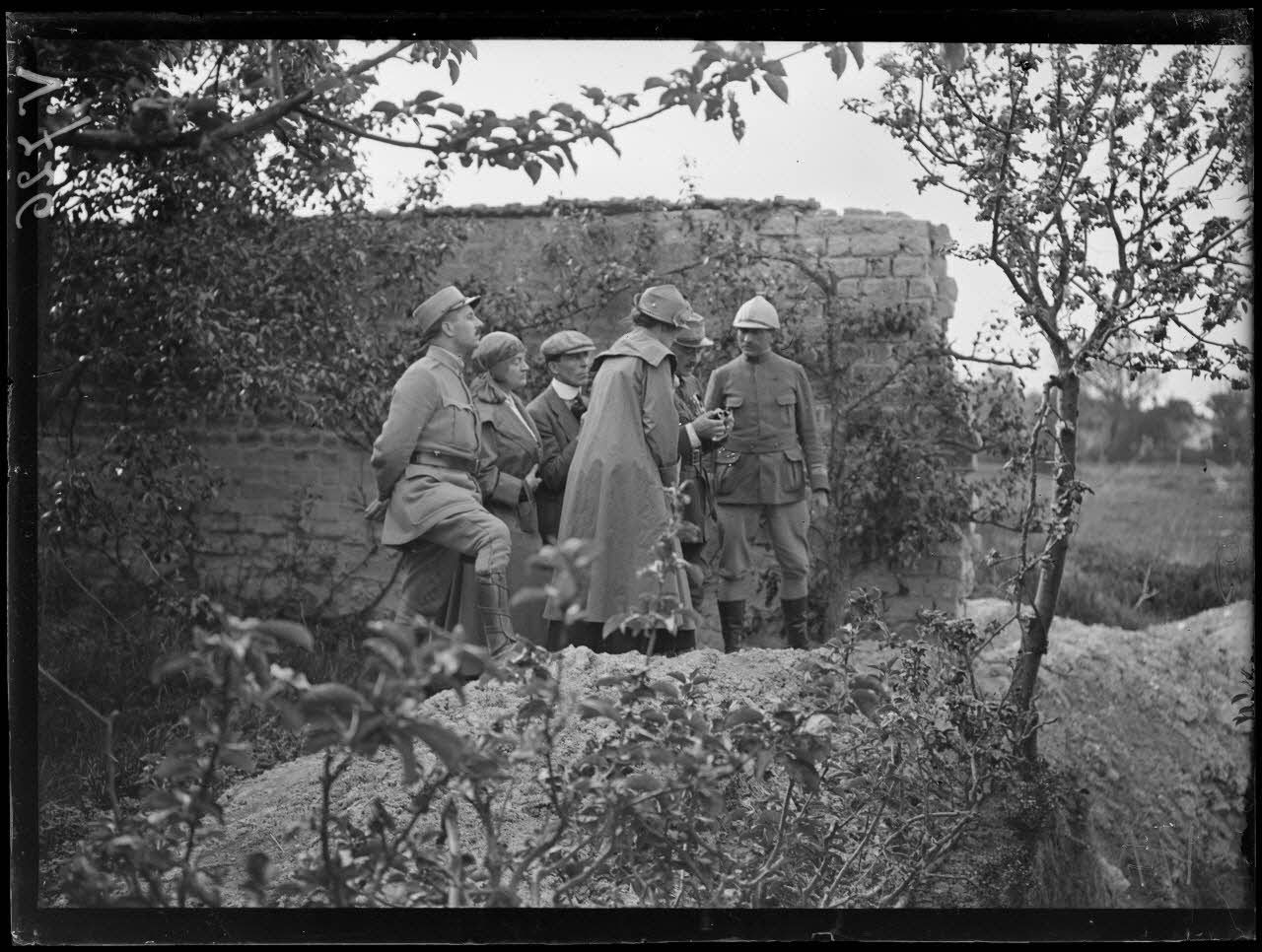 Cette mission, composée de mesdames Turmpacher, Harper et Kinney, se déplace ensuite à La Neuvillette (environ 5 km au nord de Reims) et sur les bords du canal de l'Aisne aux Cavaliers de Courcy, où sont visibles les premières lignes ennemies.Lors de la visite, un lâcher de pigeons voyageurs est effectué devant la délégation (V 725). Cette même délégation arpente une tranchée, où, pour des raisons de sécurité, les visiteurs doivent se cacher de l'observation ennemie.