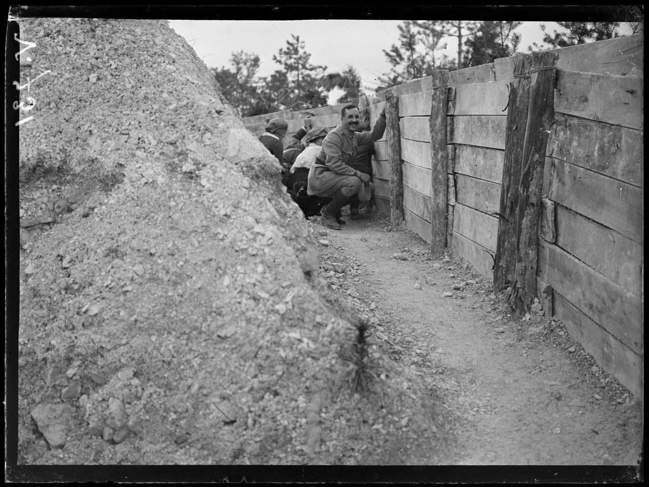 Cette mission, composée de mesdames Turmpacher, Harper et Kinney, se déplace ensuite à La Neuvillette (environ 5 km au nord de Reims) et sur les bords du canal de l'Aisne aux Cavaliers de Courcy, où sont visibles les premières lignes ennemies.Lors de la visite, un lâcher de pigeons voyageurs est effectué devant la délégation (V 725). Cette même délégation arpente une tranchée, où, pour des raisons de sécurité, les visiteurs doivent se cacher de l'observation ennemie.