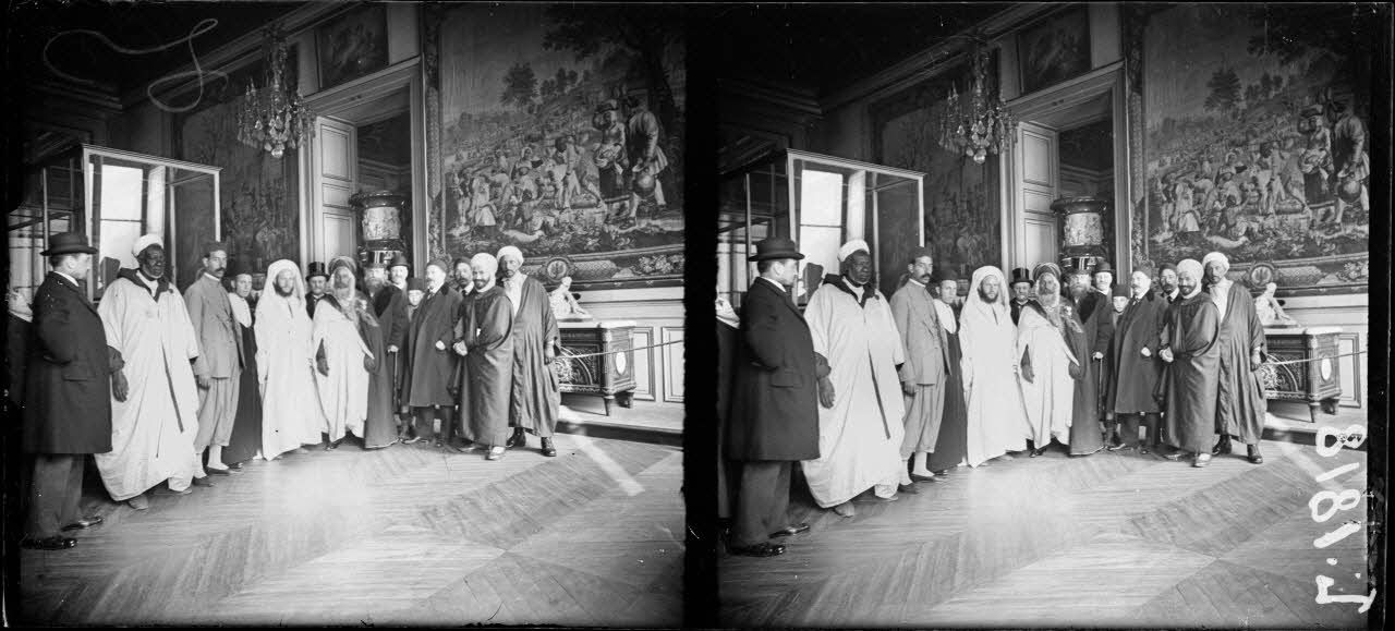 Le reportage présente la mission musulmane en visite à Paris, après son retour de La Mecque (SPA 34 L 1801 à 1860) :