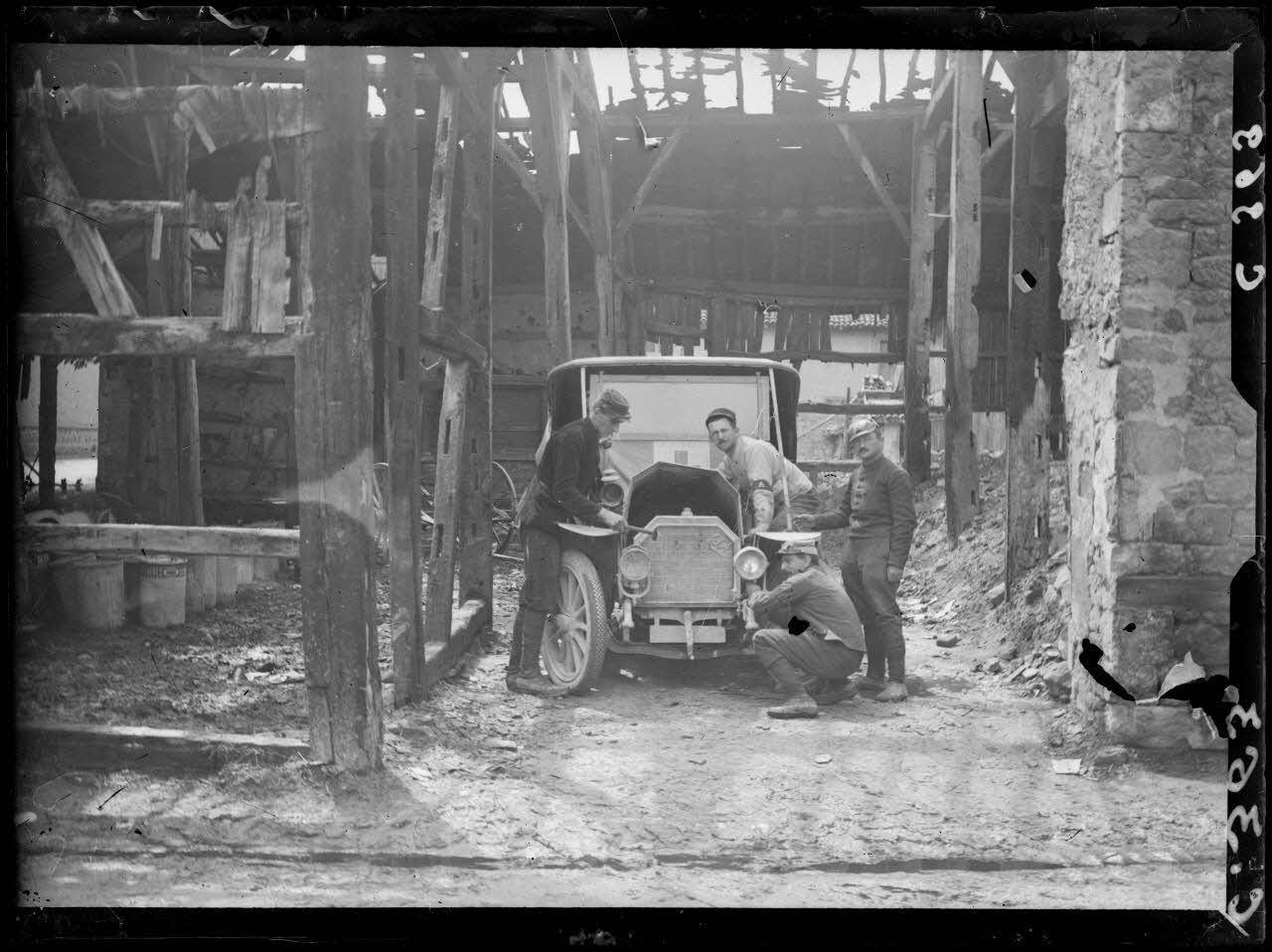 La Neuville-au-Pont. Dans un garage incendié. [légende d'origine]