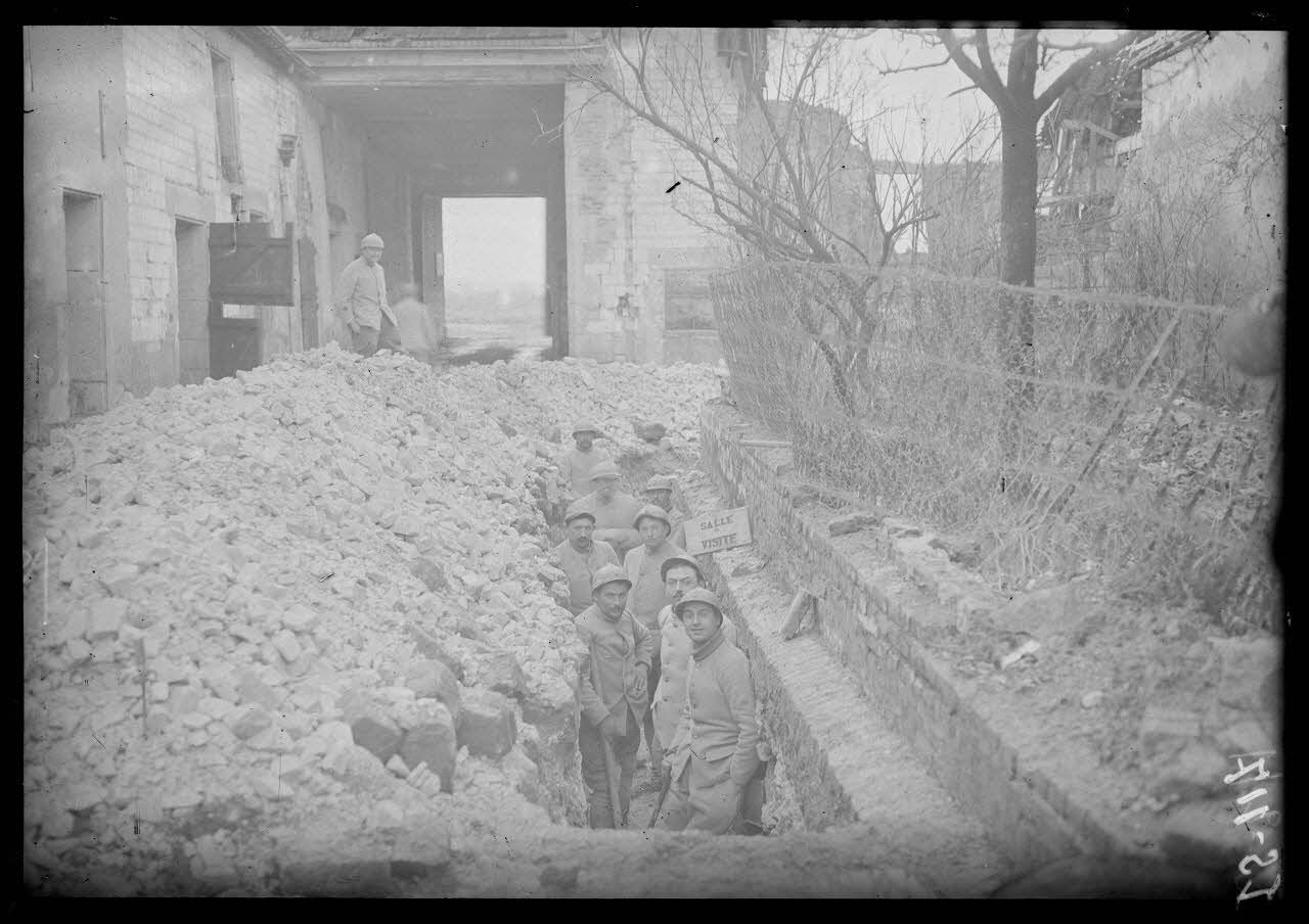 La Neuvillette, Marne, construction d'un boyau dans le village par des soldats du 410e RI.