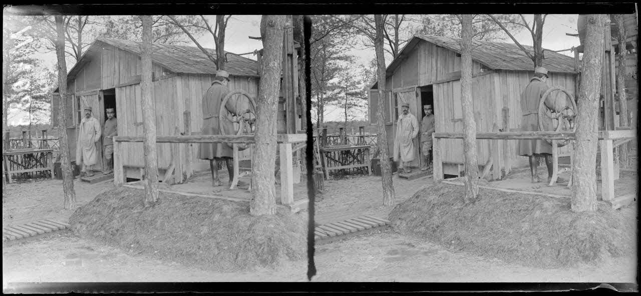 La Noblette (Marne). Camp d'aviation. Cantonnement des aviateurs sous bois (avril 1917).