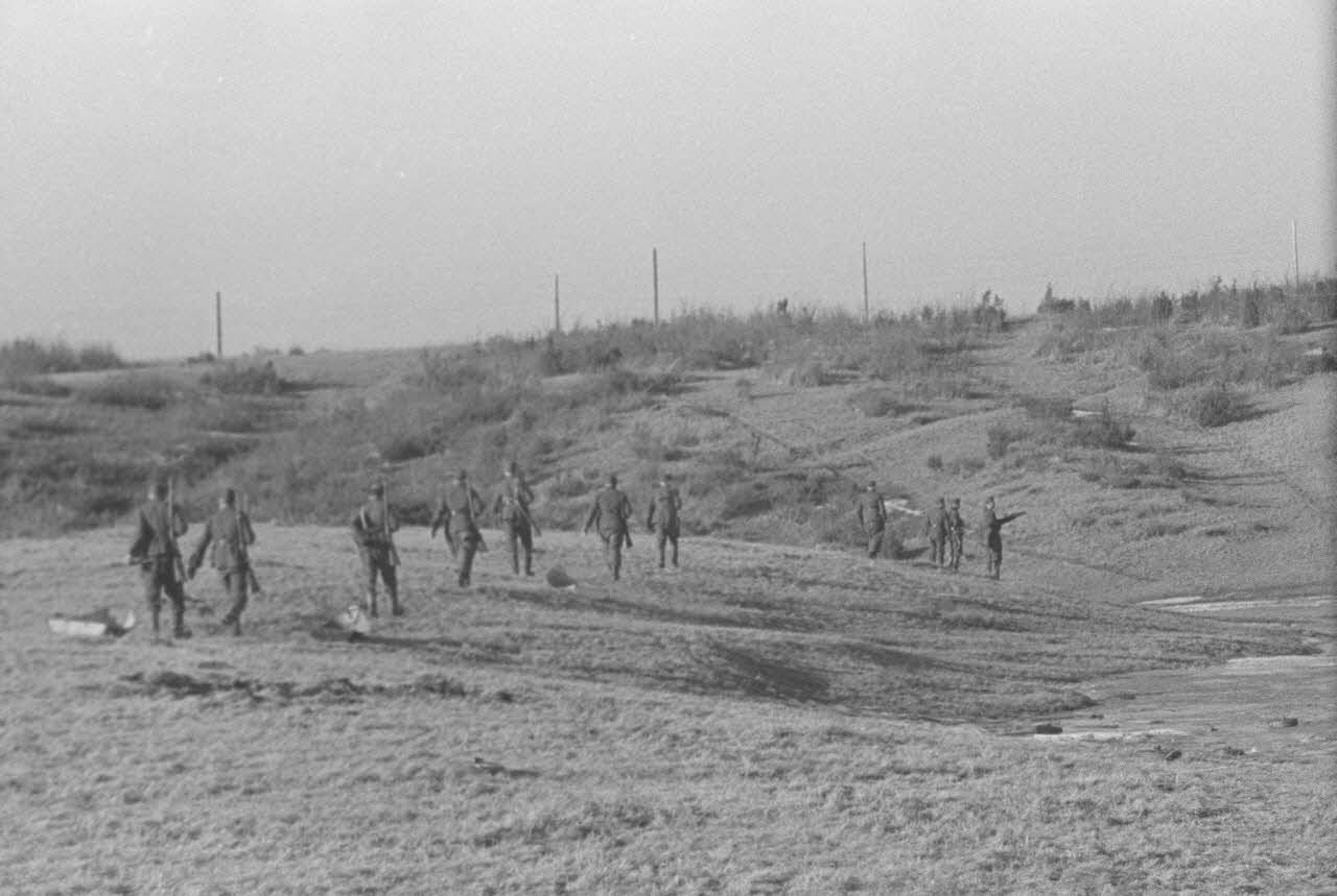 Un briefing de fantassins avant le départ d'une patrouille chargée de récupérer les corps de soldats allemands.