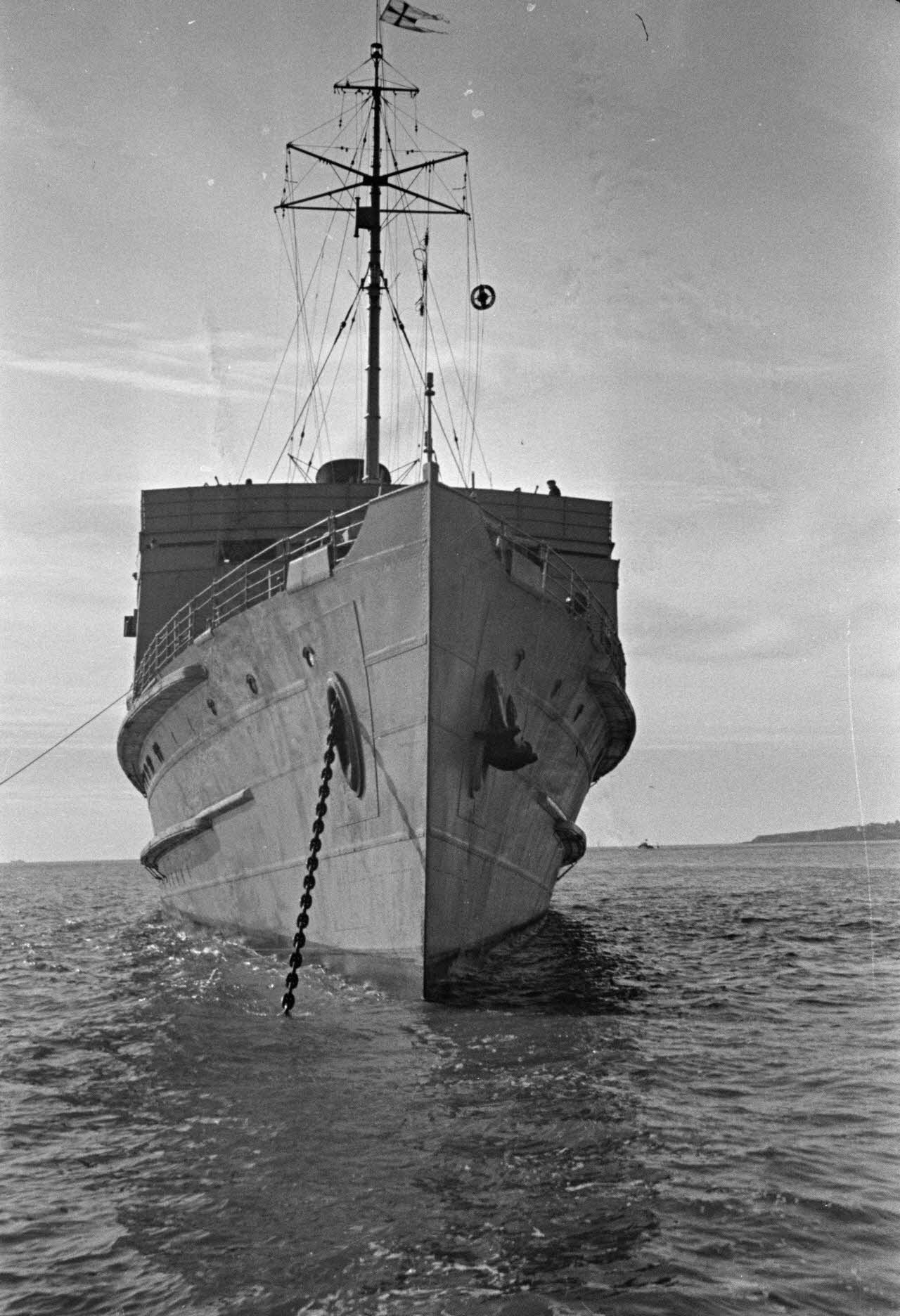 La proue du mouilleur de mines Ostmark peu après des modifications apportées à Nantes.