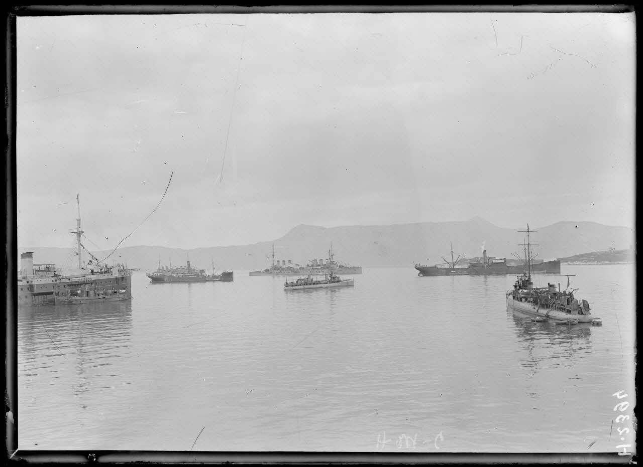 Bâtiments militaires dans la rade de Corfou, avril 1916.