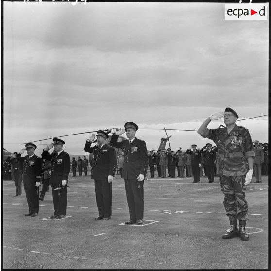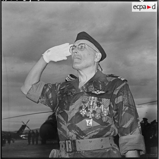 La Reghaïa. Base aérienne 146. Portrait du colonel Coulet saluant pendant la cérémonie.