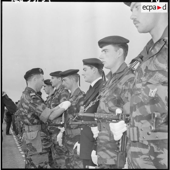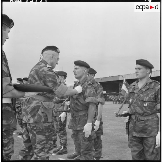 La Reghaïa. Base aérienne 146. Le général Jouhaud remet une décoration.