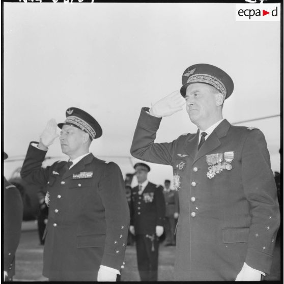 La Reghaïa. Base aérienne 146. Le général Martin salue le colonel Coulet.
