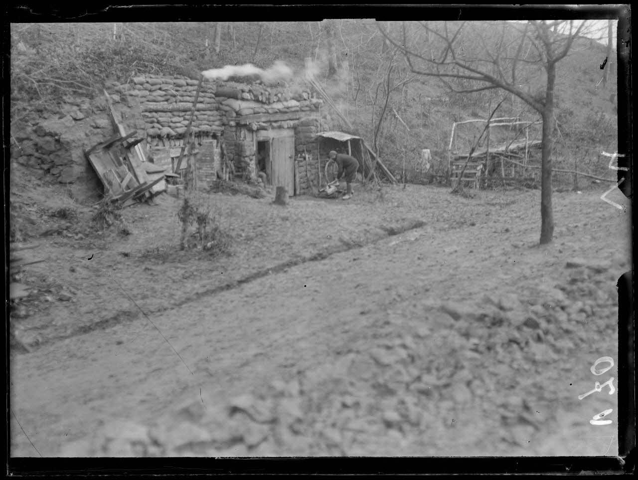 - Á Saint-Hubert, (forêt d'Argonne, 26-28/11/1915, de V13 V15), une compagnie d'infanterie tient les abris du ravin, préparant le repas dans une cuisine de fortune.
