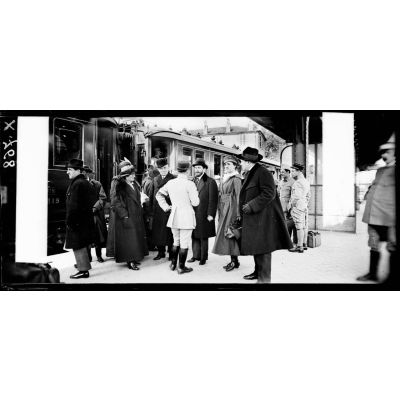 Paris. Gare de l'Est. Le théâtre aux armées. Monsieur Dalimier assiste au départ des artistes.
