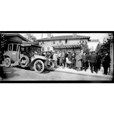 Dieulouard (Meurthe-et-Moselle). Le théâtre aux armées. Arrivée de Mme Sarah Bernhardt pour la représentation.