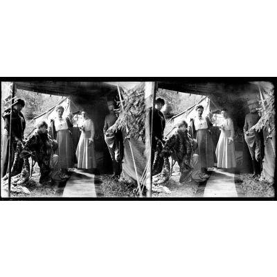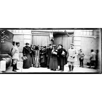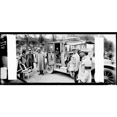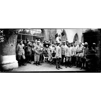 Dieulouard (Meurthe-et-Moselle). Le théâtre aux armées. Mme Sarah Bernhardt après la représentation donnée aux blessés de l'hôpital.