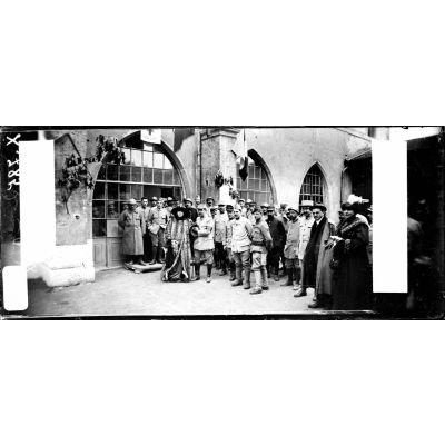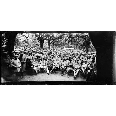 Dieulouard (Meurthe-et-Moselle). Le théâtre aux armées. Les soldats du Bois Le Prêtre viennent assister à la représentation.