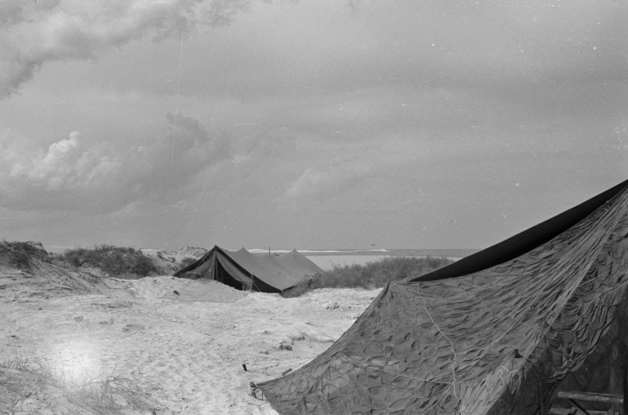 La tente camouflée contre l'aviation britannique (légende d'origine).